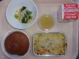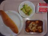 ○チーズパン ○牛乳 ○豆腐のケチャップグラタン ○野菜のカレードレッシング ...