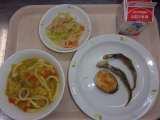 ○カレーうどん ○牛乳 ○天ぷら(ししゃも、さつまいも) ○野菜のごま風味 ...