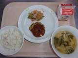 ○麦ごはん ○牛乳 ○魚のピリ辛ソースかけ ○おひたし ○きんぴら煮 ・米...