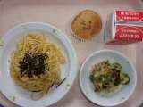 ○和風スパゲッティ ○牛乳 ○わかめサラダ ○レーズンスパイスケーキ ・に...