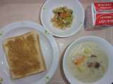 ○セサミトースト ○牛乳 ○クリームシチュー ○ビーンズサラダ ・にんじん...