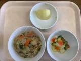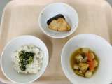 〜献立〜 青菜とじゃこのごはん 魚と揚げじゃが みそ...