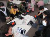 1組の授業は総合です。保護者の方々にもご協力いただいた地域の安全マップの発表準備...