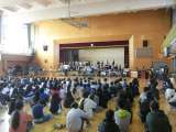 4年生は体育館で成長を祝う会の出し物の合奏の演奏をしていました。 先日、音楽朝会...