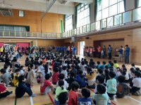 池尻フェスティバルの開会式は体育館で行いました。子どもたちはクラスごとに移動して...