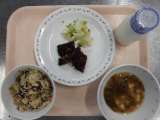 〈献立〉 ○ひじきごはん ○牛乳 ○鯨の竜田揚げ ○かぶのレモンしょうゆかけ ○...