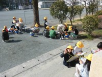 1年生は校庭に出て、育てているパンジーやチューリップの観察をしていました。春の日...
