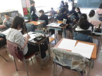 6年生では、習字をしていました。自分の今の気持ちを1枚の半紙に表していました。自...
