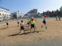 3年生は校庭でゴール型ボールゲームをしていました。今まで取り組んできた成果で、子...