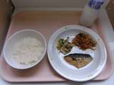 <献立> ○ごはん ○サバの塩焼き ○切り干し大根煮 ○野菜のごまだれかけ ○牛...