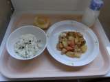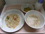 〈献立〉 ○チキンライス ○レタスのミルクスープ ○フライドポテト ○牛乳 〈...