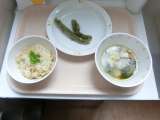 <献立> ○たけのこごはん ○牛乳 ○ししゃもの磯部揚げ ○豆腐汁 <主な食材...
