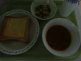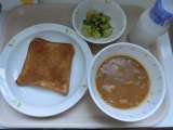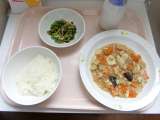 <献立> ○チーズトースト ○牛乳 ○鶏肉のトマトソース煮 ○フレンチサラダ ...