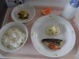 <給食> ○ごはん ○牛乳 ○魚のステーキソース ○パセリポテト ○野菜のレモン...