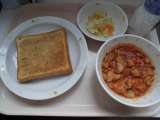 <給食> 〇セサミトースト 〇牛乳 〇ポークビンズ 〇コーンサラダ <主な食材...