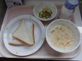 <献立> ○ジャムサンド(ブルーベリー) ○牛乳 ○コーンシチュー ○フレンチサ...