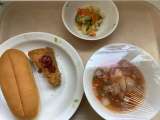 セルフフィッシュサンド・かぶのミネストローネ・マカロニサラダ・牛乳 フィッシュ...