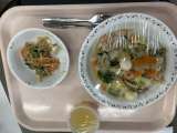中華丼・野菜の胡麻和え・りんごゼリー 今日は朝から肌寒いですね。餡のかかったご...