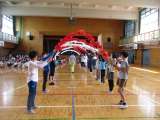 今日は雨のため、校庭では遊べません。体育館の割り当ては、4年生でした。4年生の子...