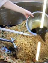 ソース焼きそば・ベーコンサラダ・ポテトスープ 「麺類は盛り付けが難しいのか盛り...