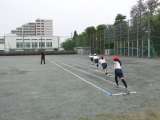 5年生が校庭で体育をしていました。 100m走のタイムを計っていました。みんな真...