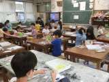 6年生の授業は図工です。「グラデーション世界」と題して、水彩絵の具でのグラデーシ...