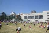 5月31日(金)体育朝会がありました。今日は、学年ごとに集まって、体力テストに向...