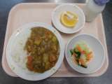 〈献立〉 ○カレーライス ○牛乳 ○ピクルス ○くだもの(甘夏) 〈主な食材の...
