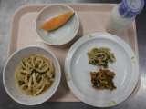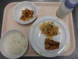 〈献立〉 ○ごはん ○牛乳 ○鶏肉の照り焼き ○糸寒天と野菜の和え物 ○じゃがい...