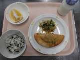 〈献立〉 ○わかめごはん ○牛乳 ○ジャンボ餃子 ○ナムル ○くだもの 〈主な...