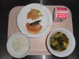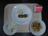 (献立) ○麦ごはん ○牛乳 ○魚のピリ辛ソースかけ ○キャベツともやしのおかか...