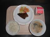○麦ごはん ○牛乳 ○きんぴら煮 ○青菜と揚げの煮びたし ○くだもの(冷凍みか...
