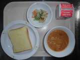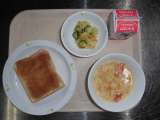 〈献立〉 ○シナモントースト ○牛乳 ○卵とトマトのスープ ○ポテト入りフレンチ...