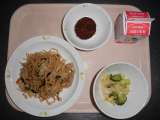 〈献立〉 ○塩焼きそば ○牛乳 ○きゅうりとキャベツの中華味 ○サーターアンダー...