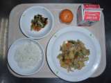 〈献立〉 ○グリンピースごはん ○牛乳 ○じゃがいものそぼろ煮 ○ちくわの磯辺揚...