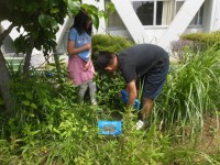 中休み、4年生が虫かごをもってビオトープにいます。なにをしているのかというと、以...