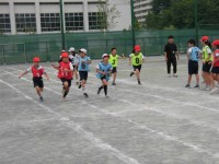 中休みになりました。子どもたちが校庭に出てきました。3年生とリレーをしました。校...