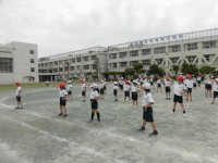 昼休みの時間、応援団が校庭で練習をしていました。明日は雨の予報なので、応援団も校...