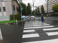 今日は雨が降っています。子どもたちは傘をさしての登校です。明日の運動会を心配して...