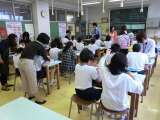 5年生は、本日体育館にてスポーツテストを行いました。 2年生と4人組のペアを組み...