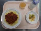 〈献立〉 ○スパゲッティミートソース ○牛乳 ○イタリアンサラダ ○梅ゼリー ...