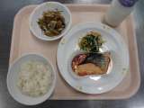 〈献立〉 ○麦ごはん ○牛乳 ○魚のみそマヨネーズ焼き ○おひたし ○きざみこん...
