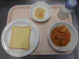 〈献立〉 ○ガーリックトースト ○牛乳 ○鶏肉のトマトソース煮 ○野菜のドレッシ...