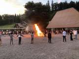 キャンプファイヤーが始まりました。 日が長くなり、まだ完全には暗くなってはいませ...
