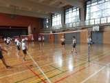 6年生の授業は体育です。体育館でキャッチバレーをやっています。 バレーボールのは...