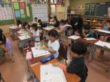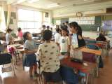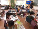 5年生の授業は家庭科です。裁縫の学習です。 子どもたちは波縫いなどをしています。...