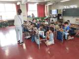 3年生の授業は外国語です。ALTの先生が来ています。 数の学習です。教科書に載っ...