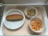 牛乳・胚芽パン・タンドリーチーズフィッシュ・マカロニトマトソテー 今日は、鱈をタ...