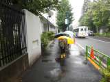 子どもたちの登校の時刻です。朝方からの雨が、強さを増しています。 子どもたちは傘...