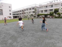 昼休みになりました。今日は昼休みも校庭遊びできます。一輪車で遊びました。最高5人...